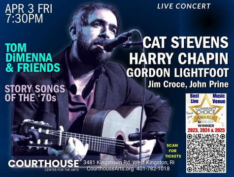 Cat Stevens/Harry Chapin/Gordon Lightfoot – Story Songs of the ’70s Vol. 2 4/3/26 FRI 7:30PM Featured April 3 @ 7:30 pm Courthouse Center for the Arts 3481 Kingstown Rd, West Kingston, RI, United States Buy Tickets